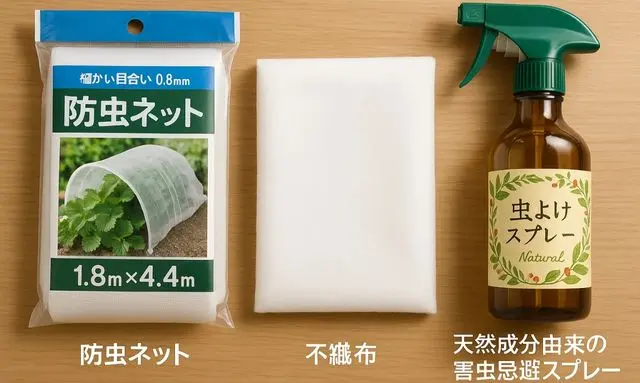 具体的に準備したい道具としては、「防虫ネット」「不織布」「天然成分由来の害虫忌避スプレー」があります。防虫ネットはプランター全体をカバーできる大きさのものを選ぶと効果的です。通気性を保ちながら、虫の侵入を物理的にブロックできるため、特に幼い苗を育てている段階では心強い味方になります。不織布も同様に使用できますが、保温効果も兼ねるため、季節によって使い分けるのが良いでしょう。