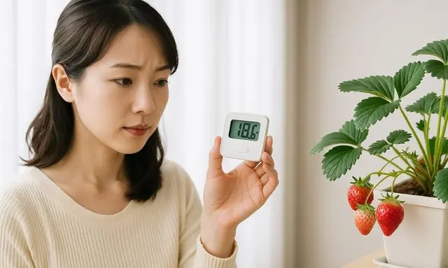 次に注目したいのが「温度管理」です。甘い果実をつけるには、低温でじっくりと育てることが効果的とされています。特に冬場の夜間に気温が10℃以下に下がると、いちごは糖分をため込む傾向があります。反対に、暖かすぎる環境で急速に育つと、糖の蓄積が追いつかず、水っぽくて淡泊な味になりがちです。室内であっても、暖房の効きすぎには注意し、適度な寒暖差を作ることが甘さを引き出すカギになります。