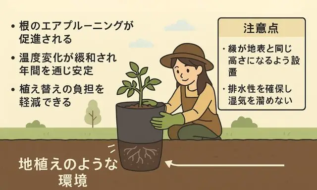 埋めて使うことで地植えと鉢植えの利点を両立できる