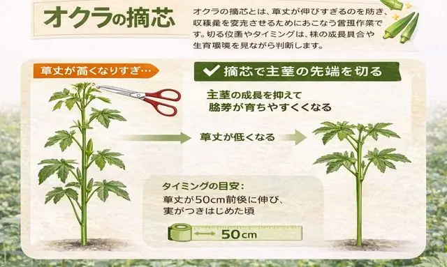 オクラの摘芯はどのように行うのですか?
