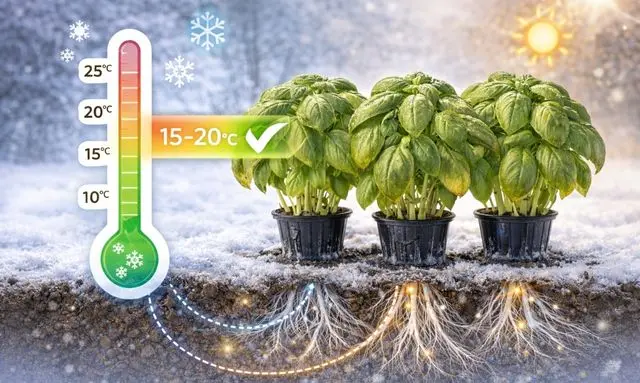 バジルを冬に管理するうえで、最も重要な判断基準のひとつが温度です。冬場は日中と夜間の温度差が大きくなりやすく、室内に置いていてもバジルにとっては厳しい環境になっていることがあります。そのため、感覚ではなく目安となる温度帯を把握しておくことが欠かせません。