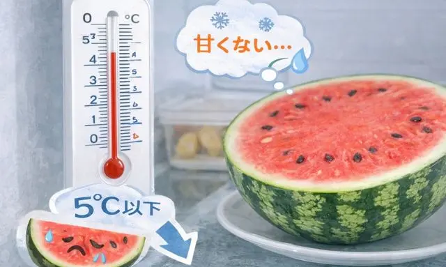 果肉が低温ストレスを受け、甘さを感じにくくなります。
