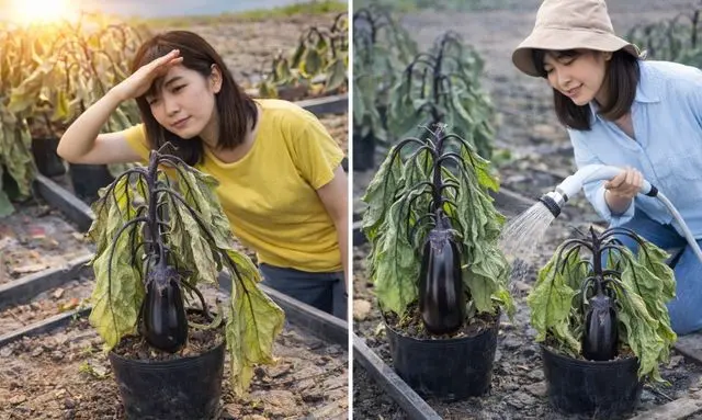 ナスの葉のしおれを判断するとき、見落とされやすいのが**気温や日差しによる「見え方の違い」**です。同じ株、同じ葉であっても、時間帯や天候によって、しおれの程度が大きく違って見えることがあります。この変化を知らないと、実際以上に状態が悪く見えてしまい、不安を強めてしまうことがあります。
