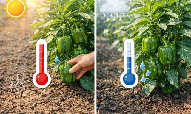 このように、ピーマンの水分管理は「土の状態」だけでなく、「今の気温で株がどれくらい水を使っているか」をセットで考えることが重要です。気温が高いから水を与える、低いから控えるという単純な判断ではなく、気温によって水の消費スピードがどう変わるかを意識することで、水やりの精度は大きく向上します。気温と水分量の関係を理解することが、ピーマン栽培を安定させる土台になります。