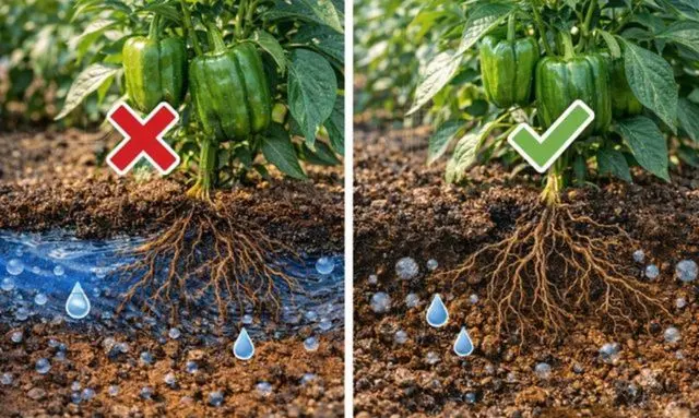 ピーマンの水やりで見落とされがちなのが、「土に水があるかどうか」と「根が水を吸えているかどうか」はまったく別の話だという点です。水やりの失敗は、水が足りないから起きるのではなく、根が水を吸えない状態を作ってしまうことで起こるケースが非常に多くなります。この考え方を理解できるかどうかが、水やり上達の大きな分かれ道になります。