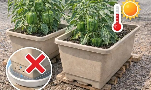 また、直射日光と地面からの熱にも注意が必要です。プランターは地面やベランダの床から熱を受けやすく、土の温度が上がりやすい傾向があります。土温が上がりすぎると、根が弱り、水を吸う力が低下します。夏場は、プランターを直接コンクリートの上に置かず、すのこなどで底上げすることで、温度上昇を抑えやすくなります。