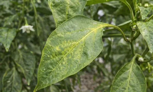 ピーマンの葉が黄色くなる症状の中でも、比較的特徴がはっきりしているのが、葉脈(筋)だけが緑色のまま残り、その周囲が黄色くなるパターンです。葉全体が均一に薄くなるのではなく、網目状に緑が残り、間の部分が抜けるように黄変していく。このような変化は、原因を絞り込むうえで重要なヒントになります。