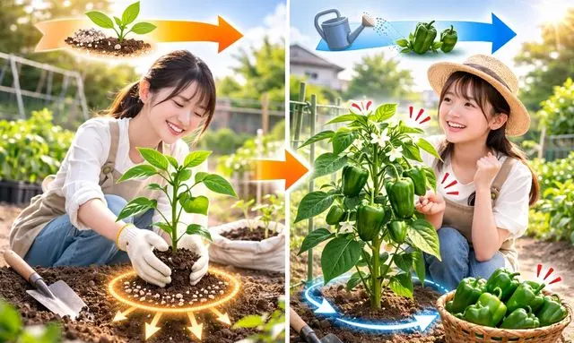 ピーマンは長く収穫できる魅力的な野菜ですが、その分、管理の積み重ねが結果に反映されやすい作物でもあります。元肥でスタートを整え、追肥で勢いを維持するという基本を理解することで、初心者でも安定した収穫に近づくことができます。肥料を増やすことよりも、役割を理解して使い分けることが、ピーマン栽培の成功につながります。