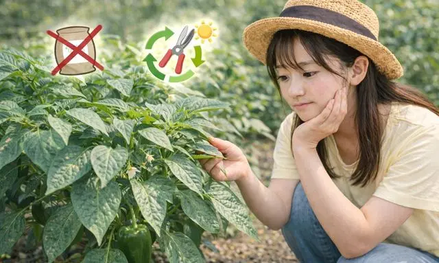 さらに、追肥を増やす前に、水分、日照、風通し、気温といった環境条件を整えることも効果的です。ピーマンでは、肥料よりも環境要因が原因となっているケースが多く、環境改善だけで着果が回復することも珍しくありません。