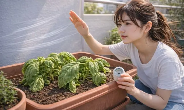 家庭菜園では、水や肥料だけでなく気温環境も植物の状態に大きく影響する要素です。葉が弱って見えるときは、日差しや温度の環境にも目を向けてみることで原因が見えてくることがあります。🌞🌿