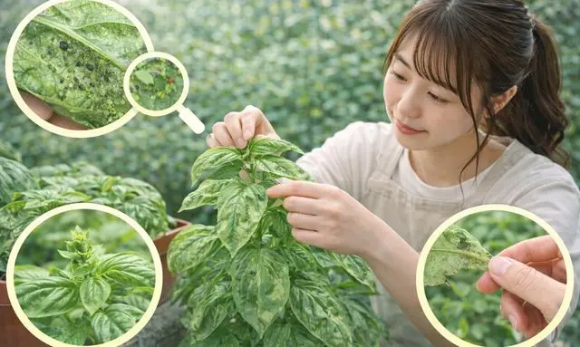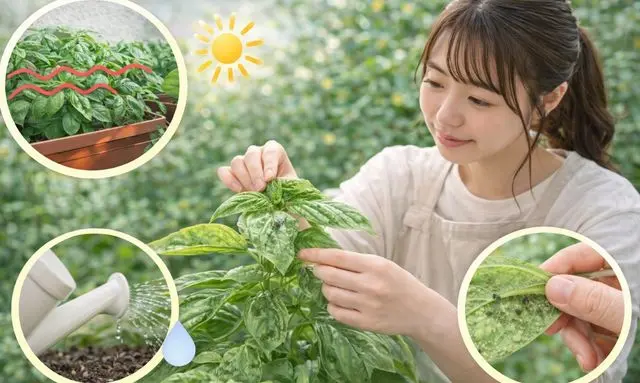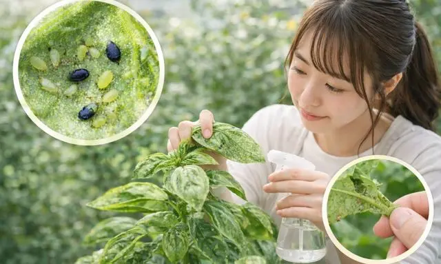 このように、バジル栽培では葉の裏を確認することが害虫発見の大きなポイントになります🌿 表面だけでなく裏側も観察する習慣をつけておくことで、小さな害虫の発生にも早く気づくことができ、家庭菜園でもバジルを健康に育てやすくなります。