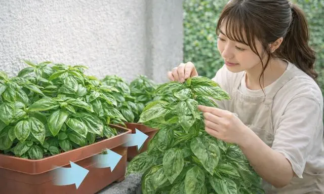 プランターでバジルを育てている場合は、置き場所を少し調整するだけでも風通しが改善されることがあります🌬 例えば、プランターを壁にぴったり付けて置いていると空気が流れにくくなりますが、数センチほど間隔を空けるだけでも空気の通り道ができやすくなります。ベランダや庭でも、風が通る場所を選んで置くことで株の環境が整いやすくなります。