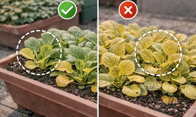 小松菜が黄色くなる原因を見分ける考え方 🌿