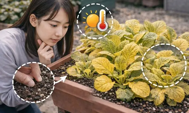 小松菜の葉が黄色くなっているのに気づいたら、まず大切なのは原因をひとつに決めつけず、育て方の基本を順番に見直すことです 😊