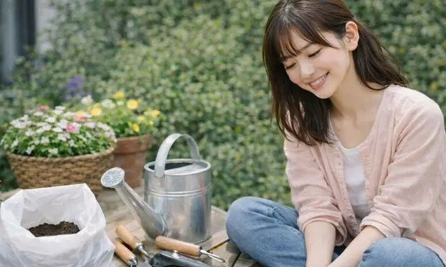 たとえば、植物を植えるための鉢やプランター、植え付けに使う土、植物そのもの、そして水やりのためのジョウロ。このくらいがあれば、最初の一鉢は問題なく始められます。場合によっては、小さなスコップがあると土を入れやすくなりますが、最初から道具を何種類もそろえなければできないわけではありません。初心者のうちは、完璧な道具セットを作ることよりも、「今の自分が無理なく始められる形」を作ることのほうがずっと大切です 😊🌼