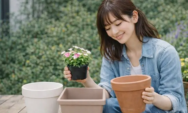 ベランダに置くなら、風で倒れにくい安定感があるか、掃除や移動のときに負担にならないかを見ておきたいですし、玄関に置くなら、通るたびに邪魔にならないか、圧迫感が出すぎないかも考えておくと安心です。庭に置く場合でも、最初から大きな鉢をいくつも並べると管理が大変になりやすいため、初心者のうちはひとつの鉢が無理なく置けるサイズ感を意識したほうが続けやすくなります 🌼 鉢は単体で選ぶのではなく、「どこに置くか」「どのくらいの距離で見るか」と合わせて考えると失敗しにくいです。
