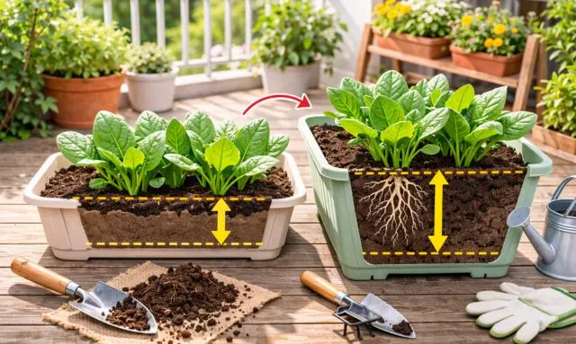 このように、ほうれん草のプランター栽培では、浅すぎない深さのある容器を選ぶことが大切です🪴🥬