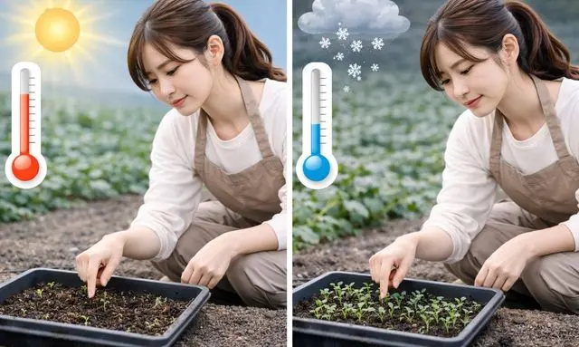 種はただ土に入っていれば自然に芽が出るわけではなく、水分を吸ったあとに、気温の条件が合うことで少しずつ動き始めます。ところが、温度が低すぎたり高すぎたりすると、その働きが鈍くなったり、うまく進まなかったりして、発芽しにくくなります。