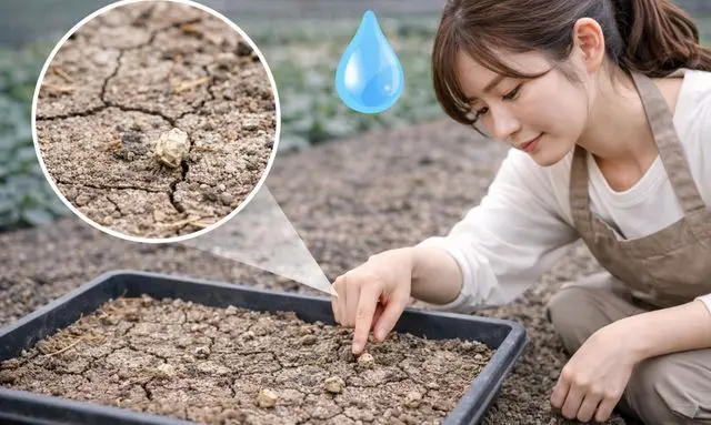 乾燥を防ぐには、土の表面だけでなく種のある位置の湿り気を意識することが大切です 🌿