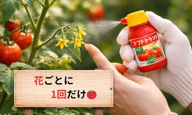 トマトは次々と新しい花房ができていく野菜なので、例えば1週間後に別の花房が咲いた場合は、その新しい花には使用できますが、すでに処理した同じ花房にもう一度かける必要はありません 😊
