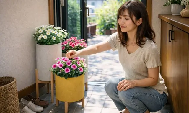 無理なく置けて、手入れが苦にならない植物を選ぶことが、玄関ガーデニングを長く楽しむコツになります 😊